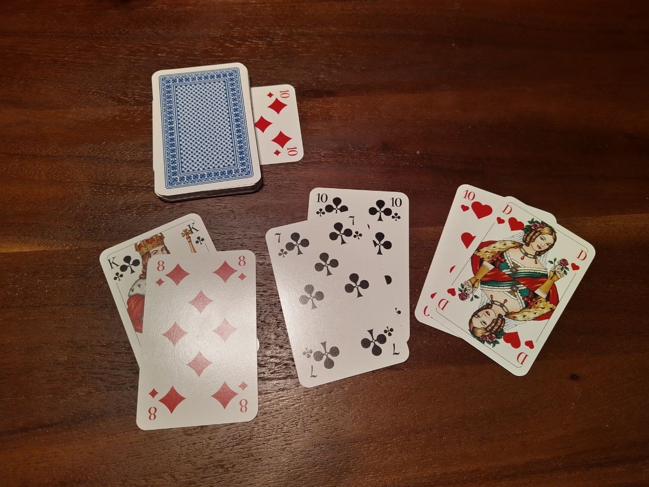 - An additional card is uncovered and placed under the deck perpendicularly. This is the trump for the round.